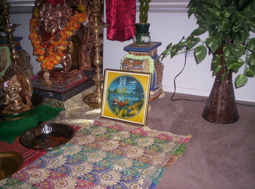 We read from Gurudeva's talk 'Singing to the Gods', which gave us some nice guide lines for satsang and the benefits of doing satsang, also started of with a Ganesh Puja and ended with Bajans. T