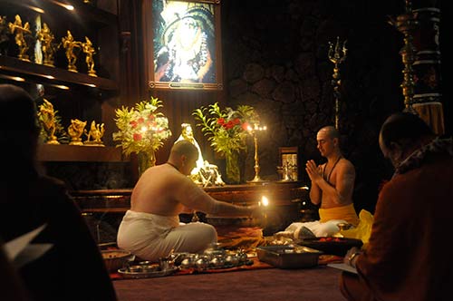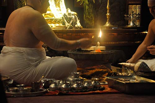 Sadhaka Nandinatha and Sadhaka Satyanatha perform the puja today.
