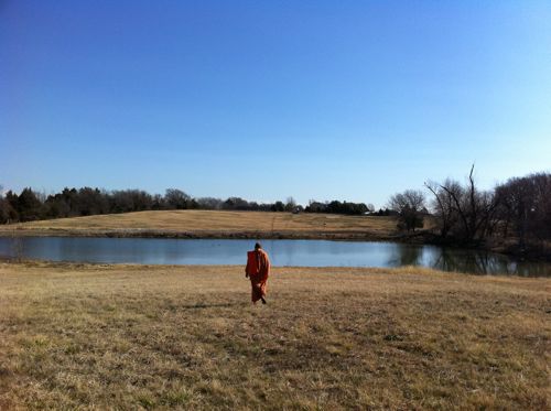 During the morning, Bodhinatha took a walk around the ranch. There is a small pond on the 33 acres.