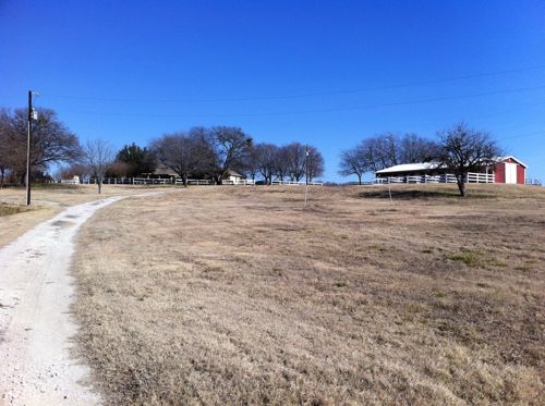 The road up to the main house on the left. Stables on the right, and a couple of old barns nearby.