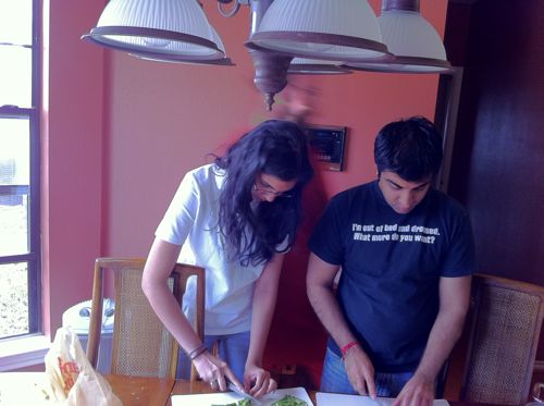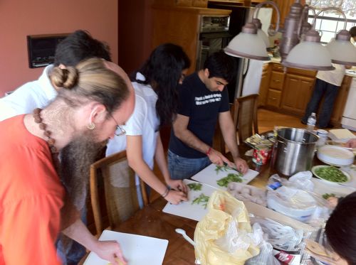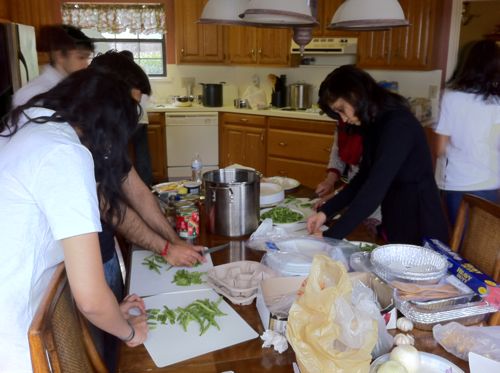 String beans. Lots of string beans. Some parents and other guests from the community were invited, so we were cooking for about 25 people.