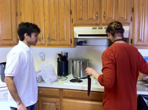 Everyone was involved. Here, a little training in how to chop vegetables.