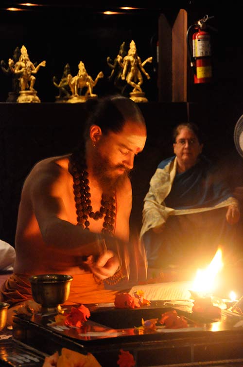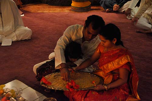 This couple from Honolulu has come to Kauai with their little daughter to have her Vidyaramba Samskara.