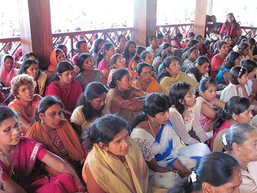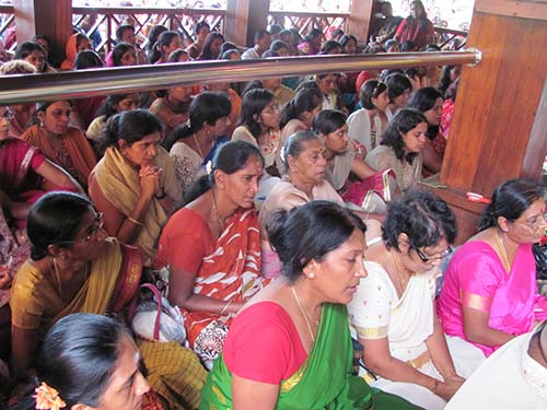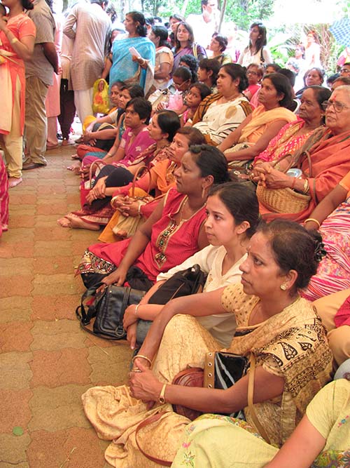 Devotees inside the Mandapam devoutly chanting the Ganesha mantra.
