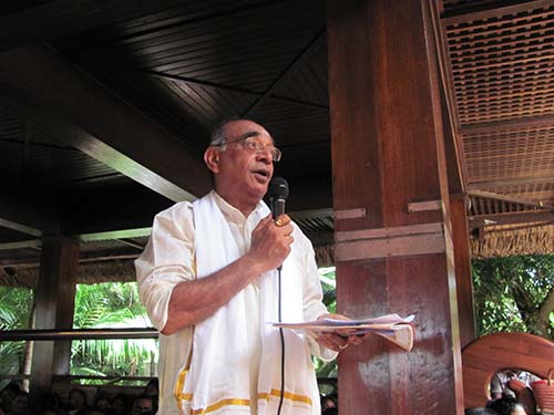Kulapati Manon Mardemootoo reading one of Bodhinatha's Talk on karma and reincarnation.