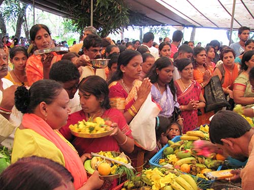 Meanwhile offerings keep coming from devotees down the Ganesha Bridge.