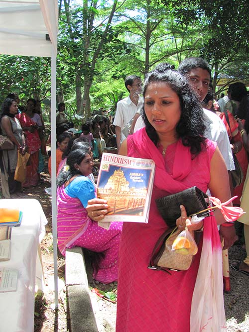 One lady purchasing a copy of our latest Hinduism Today from the HA Booth. All copies in stock were sold out on that day.