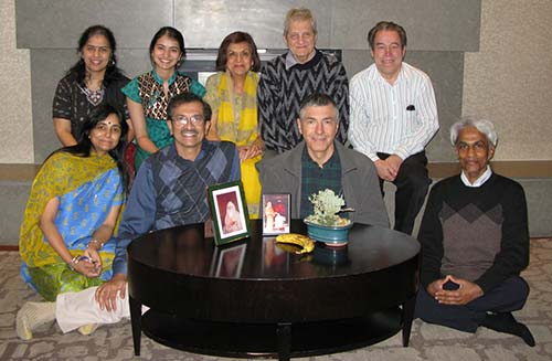 Group Picture of the Silver Vel Satsang (left to right, bottom row, Usha Satish, Satish Krishnamurthy, Vayudeva Varadhan, Nigel Siva, top row, Inpah Siva, Akhila Satish, Bulbul Gidwani, Chaturbhuj Gidwani, Henri Hoezoo)