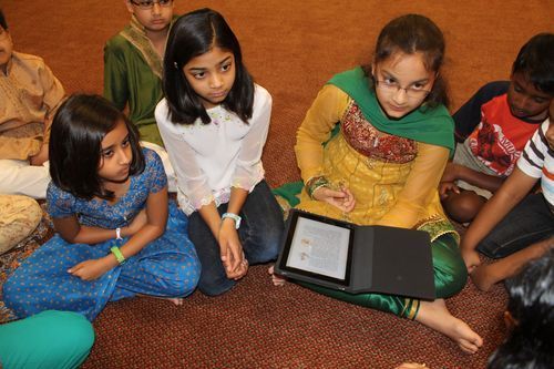 Today in Midland, Texas, pre-release ebook versions of our upcoming storybooks on the yamas and niyamas, "Ten Tales About Self-Control" and "Ten Tales About Religious Life," were tested on an iPad at a Bal Vikas class at the Hindu Association of West Texas. The books, which will be released in print later this year, are geared toward the 10-to-12 age group. Each of these two books in our new Modern Hindu Children's Stories series has ten stories, one for each yama (ethical restraint) and niyama (religious observance), respectively. The ebook versions, which have just been completed, will be released soon on Apple iBookstore (for iPad, iPhone and iPod touch), Amazon (for their Kindle e-reader) and Barnes and Noble (for their Nook e-reader). This will be the first time that the monastery will release digital versions of a publication prior to the printed edition.
