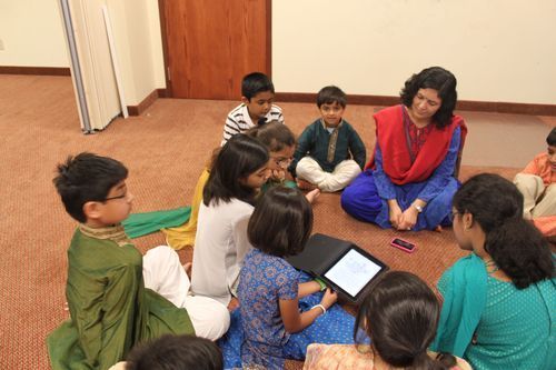 Thanks go to Dr. Padmaja Patel (standing second from right), who has been using the monastery's teaching materials in her Bal Vikas for a few years and had the idea recently to try using an iPad in her classes, an idea that has been working out really well. She shared about the new ebooks on the iPad, "I noticed that the kids were very engrossed in the story because of the audio which kept their attention. They indicated that they would like to read other stories during our next session. Comments we gathered from them included: interesting, good pictures, easy to understand, would like to read other stories next time. They liked the fact that they can read them on their iPad and the stories seemed real to them." Stay tuned for excerpts, including audio, and information about how to acquire these exciting new books!
