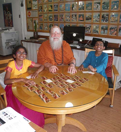During the last innersearch we had classes with Aarti and Mayuresh on the Yamas and Niyamas. Sivakatirswami asked Aarti and Mayuresh to help design some games. We started with "memory cards".