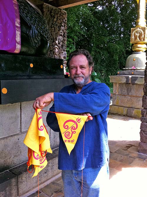 « Return to ArchivesDurvasa and Tandu Decorating KadavulMarch 2, 2011 Hanging flags is a fun job. Bright yellow Tamil Aum flags for the Nandi Mandapam.