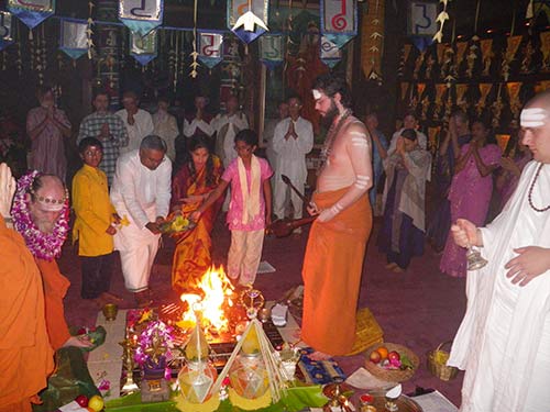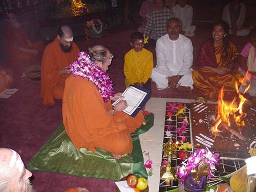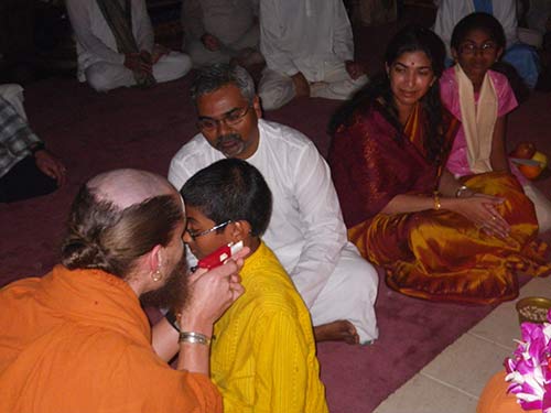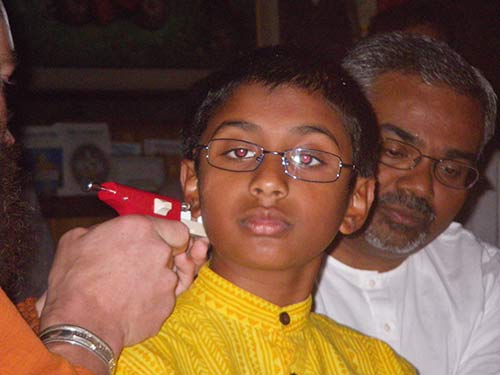 It is an auspicious week for the Rajavendran family. On Sivaratri night they took their Vrata Sishya vows and today Mayuresh had his Karnavedha Samskara.