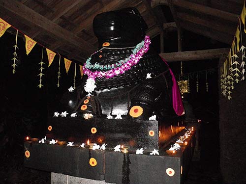 Out front, Nandi is beautifully decorated after a thorough cleaning and oiling.