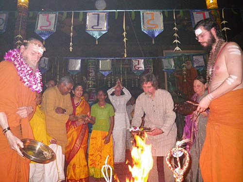 Stepping back in time to Mahasivaratri Night. Ravi and Sheela Visswanathan are here signing their Vratasishya vows during the homa.