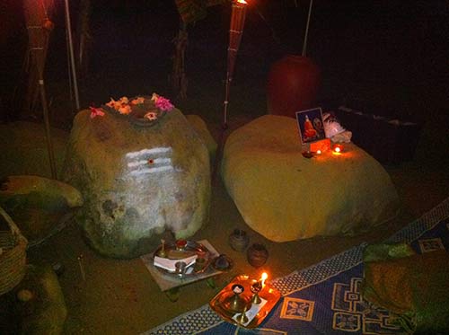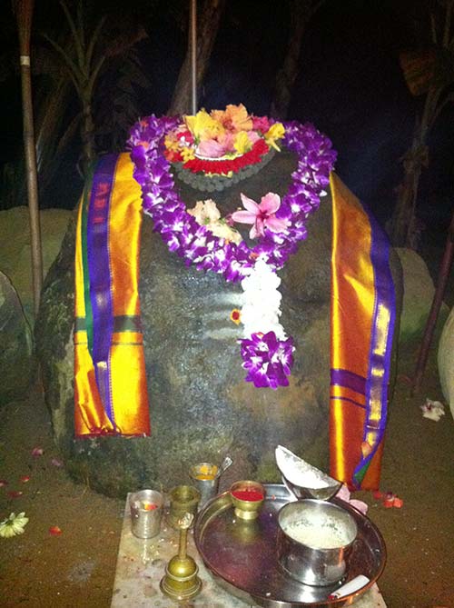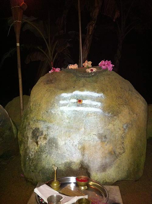 By the end of the meditation the sun had risen over the east. The stone you see here on the right was the one that Lord Siva sat on in Gurudeva's vision.