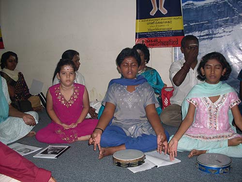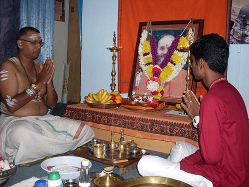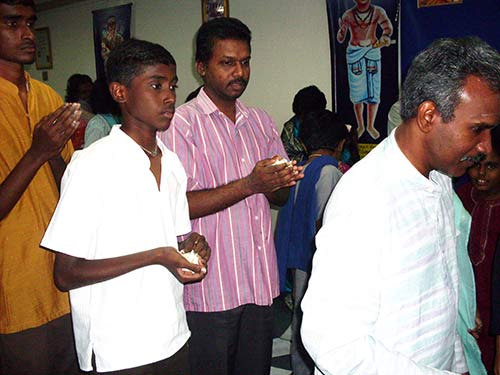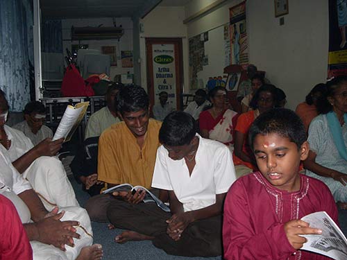 One of the members son is reading a lesson from Merging with Siva The topic was "WILL POWER"