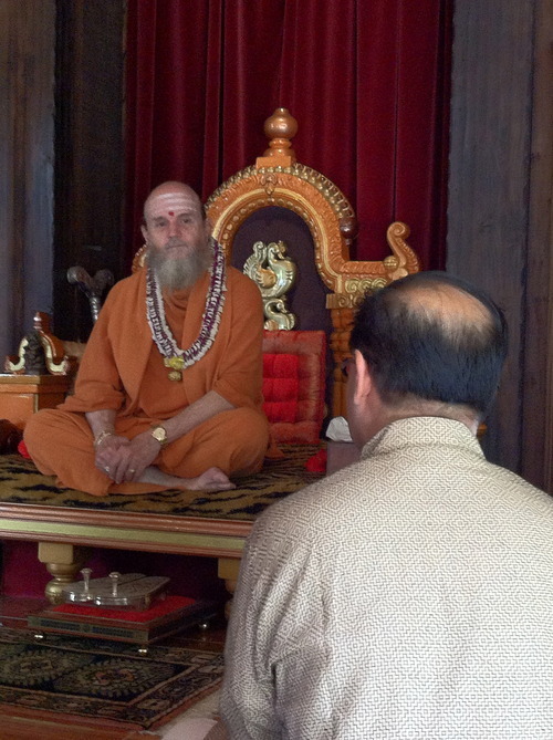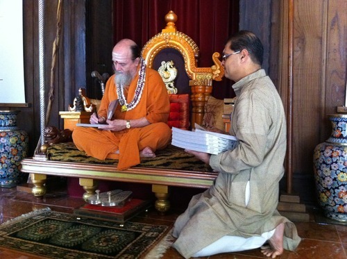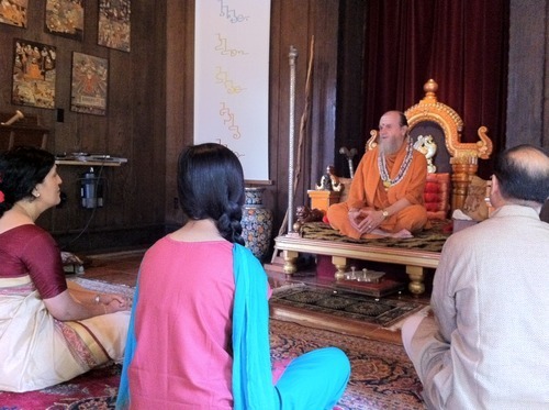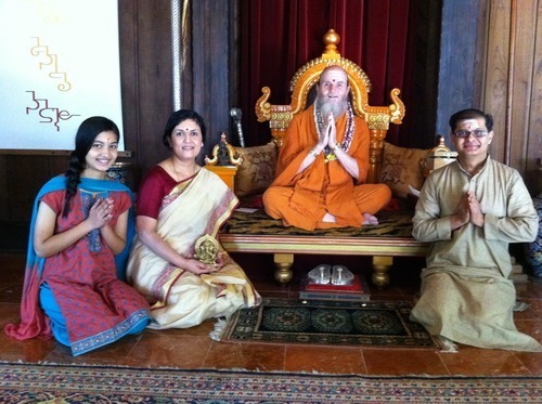 March 19, 2011Mrunal, Padmaja and Pooja Patel visited with Satguru Bodhinatha Veylanswami in the Guru Pitham this morning. They currently live in Midland in West Texas, and have been studying the Master Course, working toward becoming members of Saiva Siddhanta Church, since 2007. Recently they bought a home on Kauai very close to the monastery. They spent their week on pilgrimage in their new Kauai home for the first time, and today they brought a Ganesha murti for Bodhinatha to bless to establish their shrine in their new home. For the first time, not staying in a hotel and being able to simply walk to the temple each day, they felt truly relaxed and part of the community.