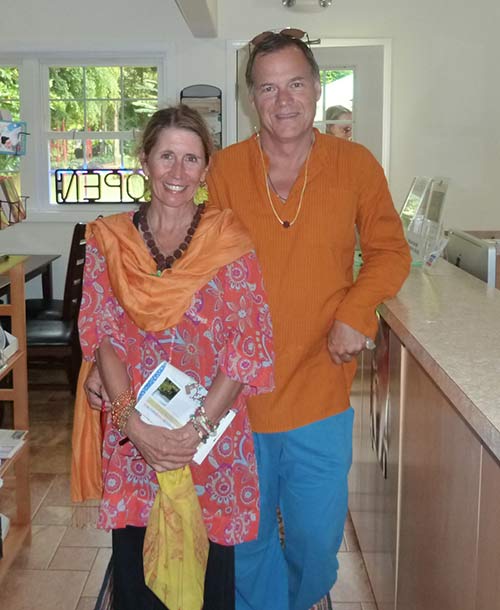 Jan Maire and Joeseph. Residents of Colarado and Lawaii, respectively. They have recently returned from South India where they pilgrimaged to many temples including the "Arupadaiveedu" of Lord Muruga. They are modeling their new Rudraksha purchases!