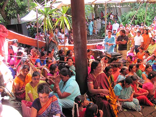The flowers and garlands speak of themselves, expressing a living testimony of love offerings from thousands of devotees.