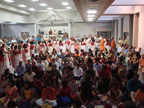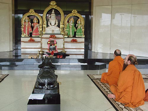 One of the main events during Satguru Bodhinatha Veylanswami's visit to Houston, Texas, was a pair of satsangs at the Chinmaya Mission facility. This is their Siva temple, which Swami Chinmayananda insisted they build here. It was finished just a few years ago.