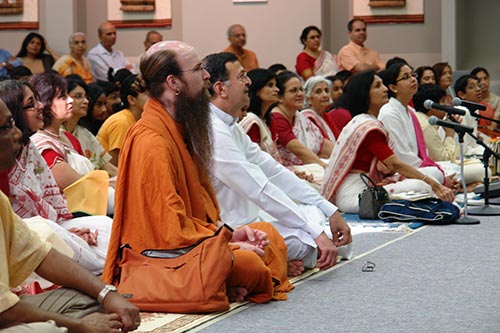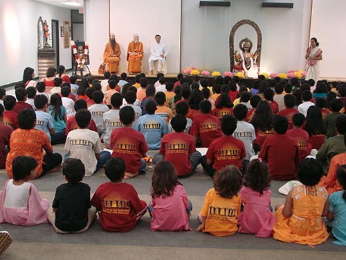 Between satsangs, a couple hundred of the Bal Vihar students sang a song that the wrote and practiced just to welcome and honor Bodhinatha.