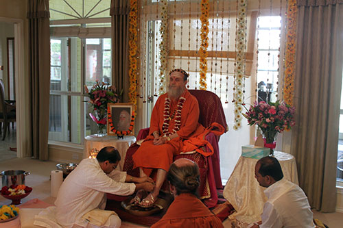 First on Bodhinatha's visit to Midland, Texas, was a pada puja at the home of our hosts, Drs. Mrunal and Padmaja Patel. This is Bodhinatha's third visit to Midland.