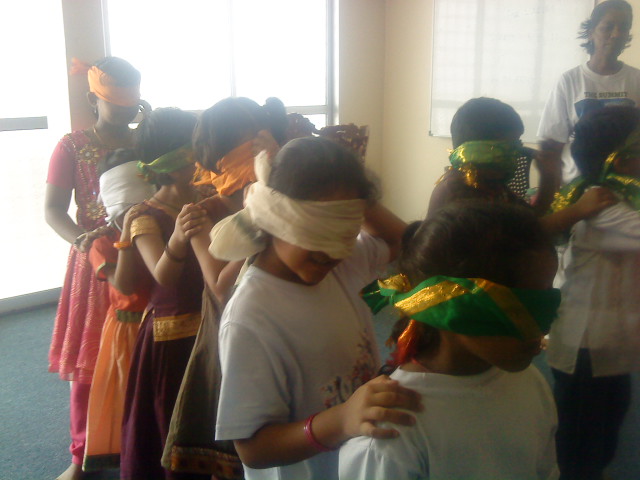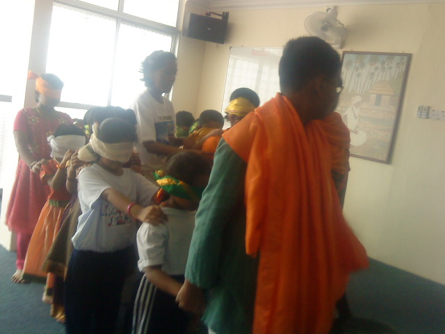April 14, 2011We held many activities for the children who attended the Sunday Religious Class. Last class focused on the importance of having a guru in ones life. The students were blind folded...
