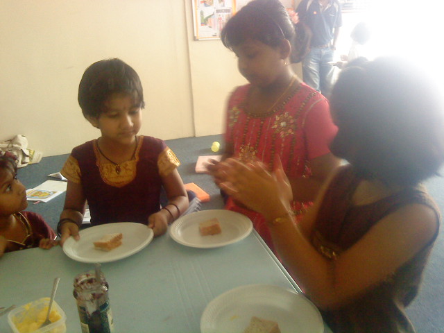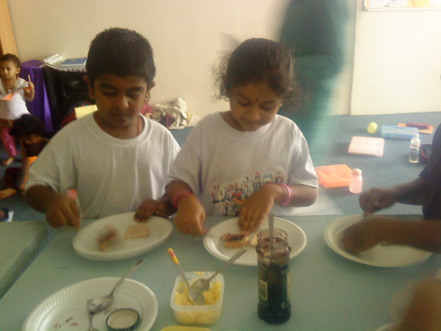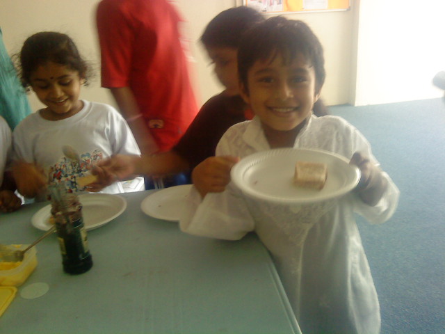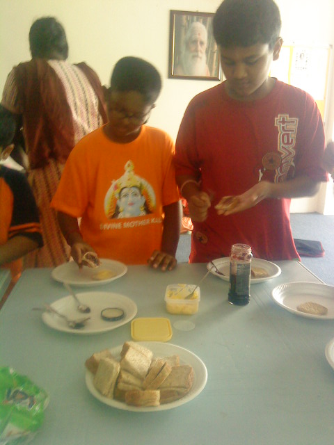 "Mine is ready!" said little Jegathiswar. The sandwiches were then presented to Lord Ganesha before eating them!!!