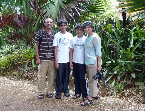 Sheetal and Hansalia originally from Kochi, Kerala in India, now living in San Jose are here with their two sons. Their home village is tropical very similar to Kauai. His father started a huge business beginning with one simple pepper tree and is now one of the largest pepper exporters to the United States. He kept looking for Pepper trees all through the tour!