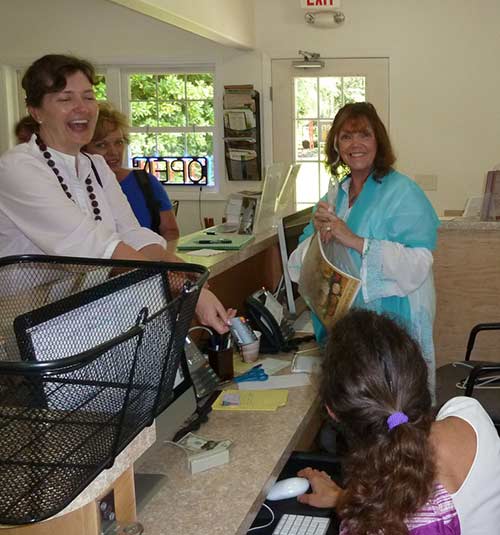 One of our near neighbors, Faith Spina, on the right, who lives high on the mountain behind us and can see our Ritau Flag Flying from her balcony. "I just had to come, I knew this was a special place. It is truly overwhelming! Her friend is Giovama Gomez, with her little son Liam.