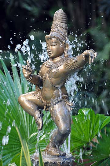 Child saint Sambandar dancing in the water of our temple tank fountain.