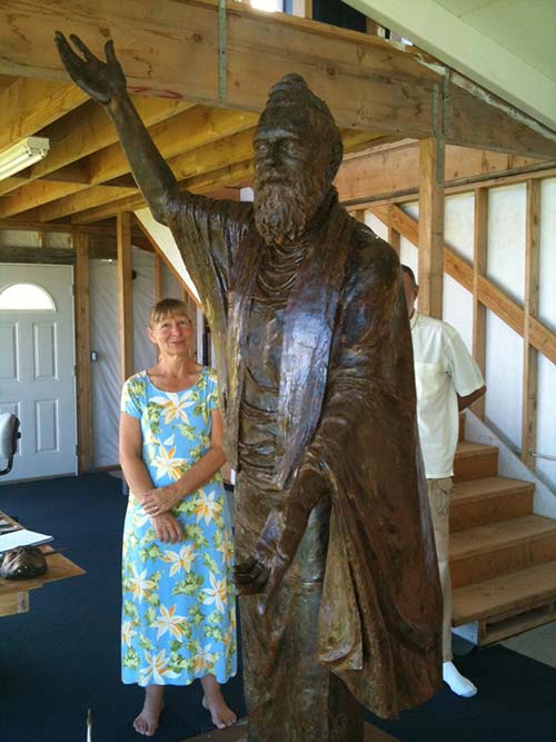 April 23, 2011Our two paramacharyas, Sadasivanatha Palaniswami and Sivanatha Ceyonswami, ventured to the town of Hilo on the Big Island of Hawaii today to meet with sculptress Holly Young. Holly is near the final stages of tweaking the wax model of Gurudeva later to be cast in metal. Our paramacharyas are there to check in on the last fine details to make sure they are accurate.