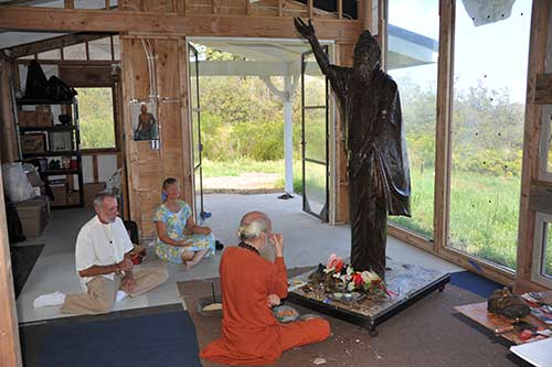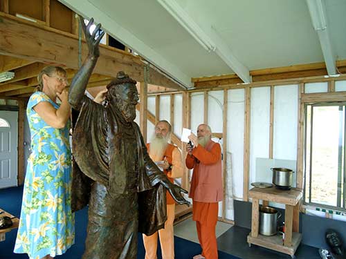 Their mission was to review the progress of the Gurudeva bronze statue. Here he is, standing in Holly Young's new studio (Gurudeva is the first major piece sculpted in this space.)