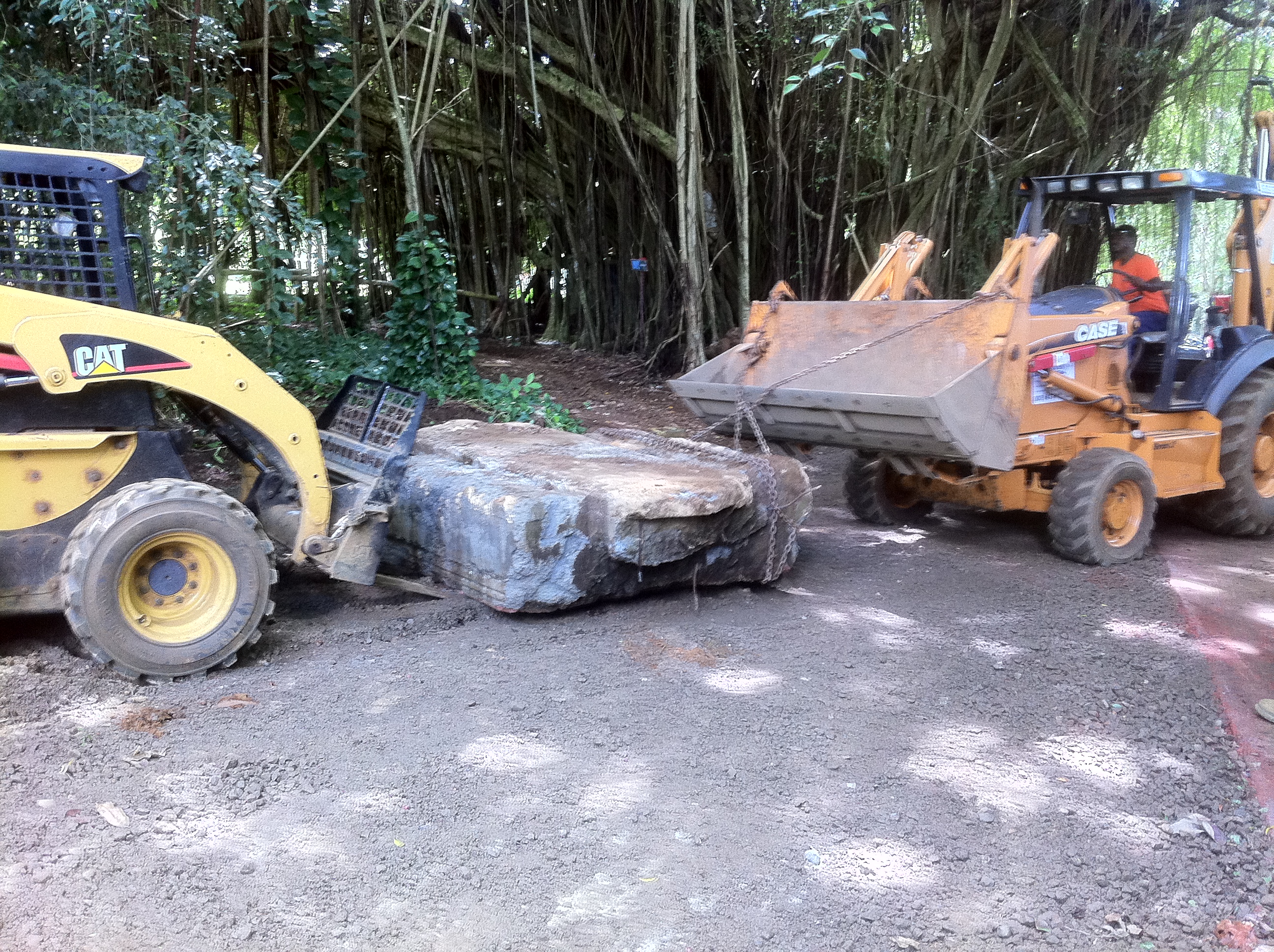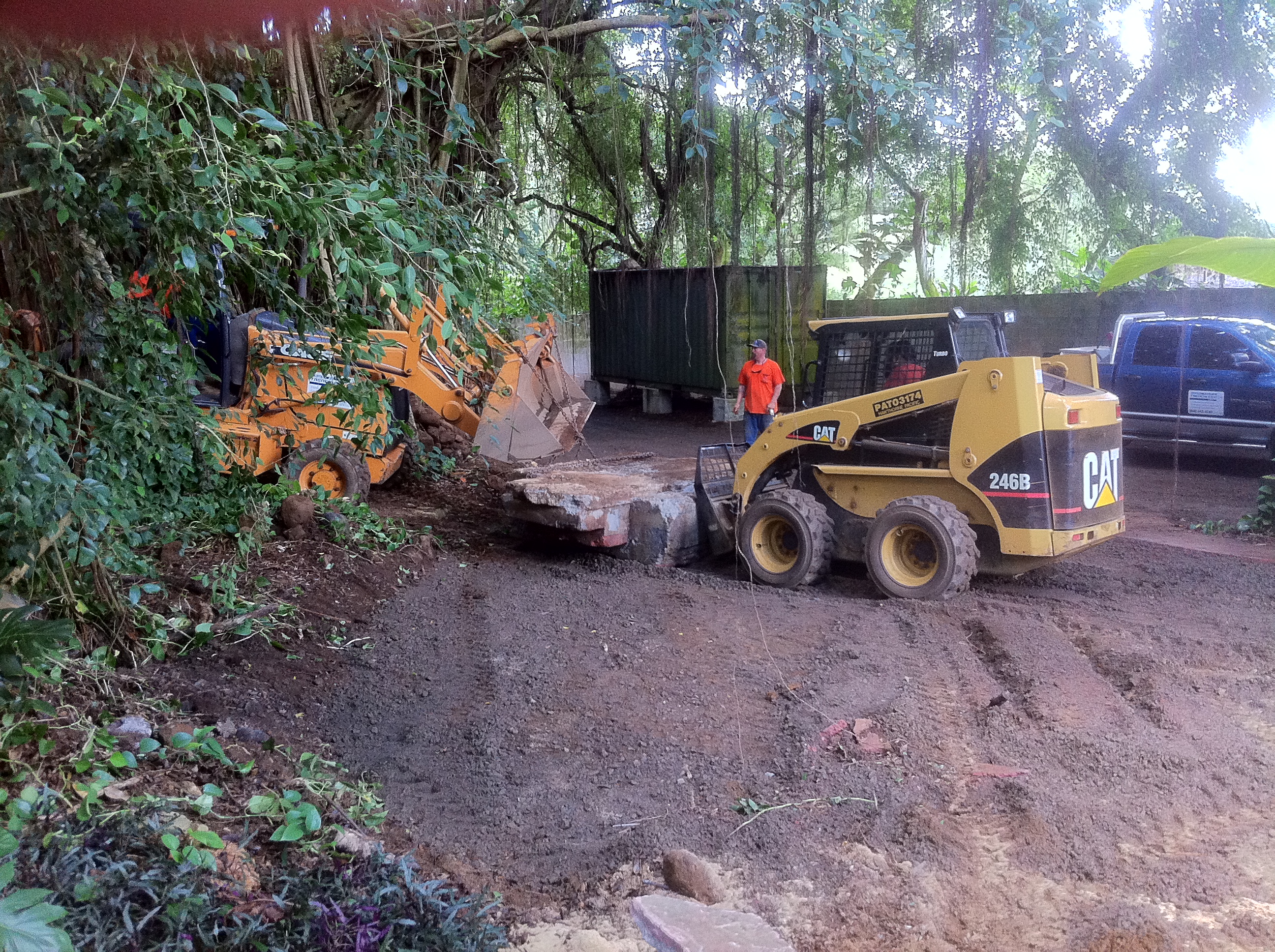 Pradeep is working with Yoginathaswami to move this giant concrete entry way that once was a ramp to a storage container that