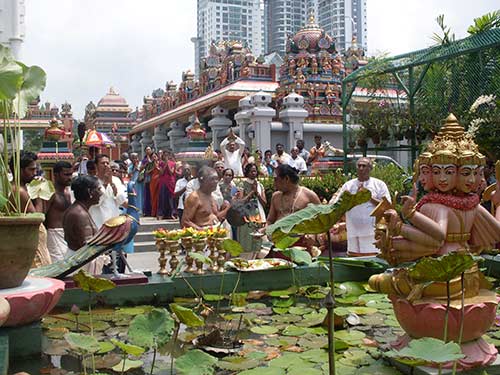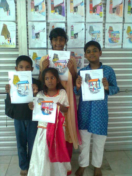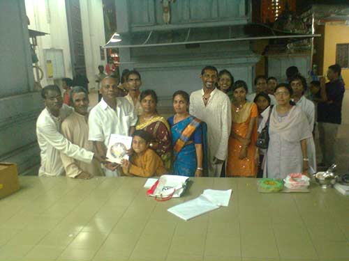 Saiva Siddhanta Church members helped Mr. and Mrs. Rajachandran to distribut free copies of "What is Hinduism" to the public at the Adi Ishwaran Sivan temple, in Sentul, Kuala Lumpure