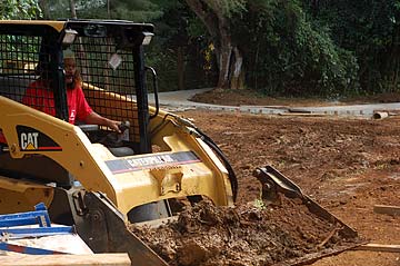 Earth works in the area around the center to make sure drainage of water is going the right directions.