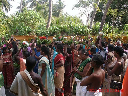 After the puja, devotees carried paal kudam (milk pots) with the sacred bilva leaves in a procession lead by a Naathaswaram and Thavil musical ensemble to the Sri Shanti Lingam temple.