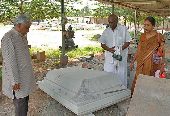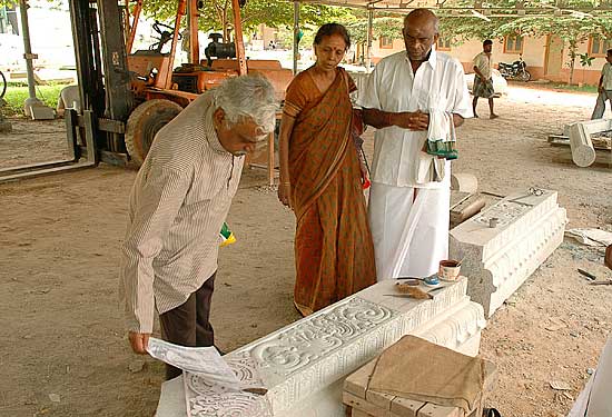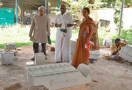 Looking at stones for the Nandi Mandapam in progress.