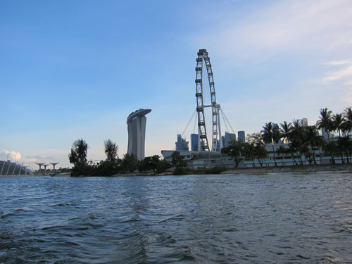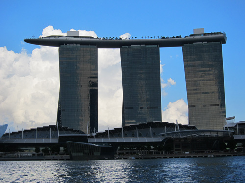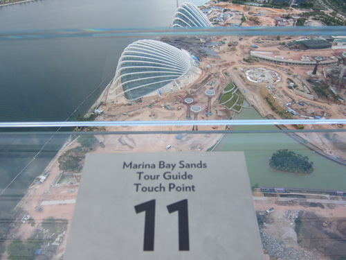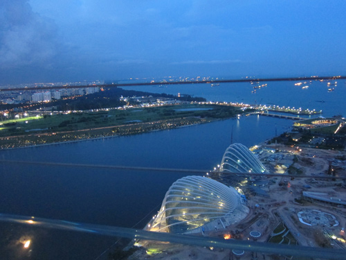 The afternoon adventures included visiting the 340m-long Marina Bay Sands SkyPark, a "ship" set on three 55 story towers on top of the world's largest public cantilevered platform, which overhangs the north tower by 67m. Unreliable sources told us its secondary purpose is to act as a life-boat when the giant waves come to Singapore during the end-of-the-world disaster in late 2012.