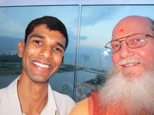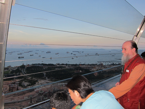 The Marina Bay Sands is located next to the Singapore Flyer. Bodhinatha, Shanmuganathaswami and the Singapore devotees rode this, the world's largest, most gigantic ferris wheel last year...