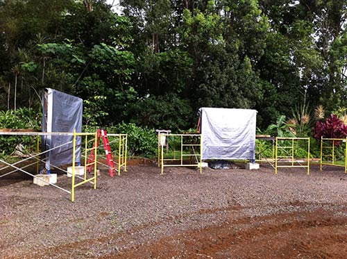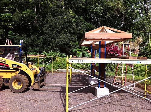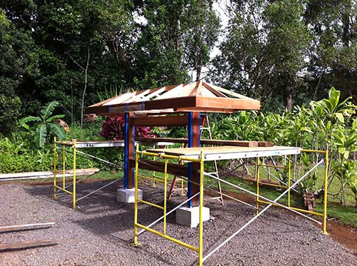 On the retreat Kulapati Deva Rajan installed the roof frames on the Siva Darshana Vanam display stands.