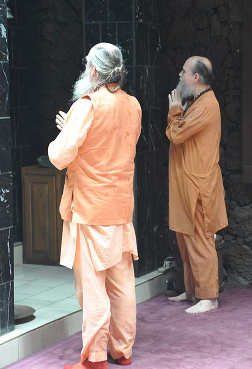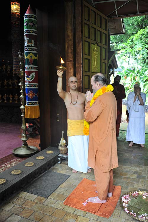 Arriving monks always go to Kadavul for arati and blessings from Lord Ganesha, Lord Muruga and Lord Nataraja, welcoming them home.