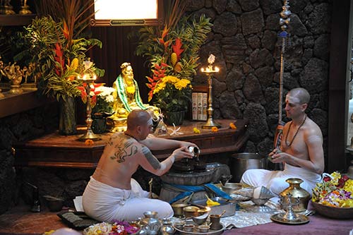 Sadhaka Rajanatha is the pujari today with Sadhaka Tejadevanatha assisting.