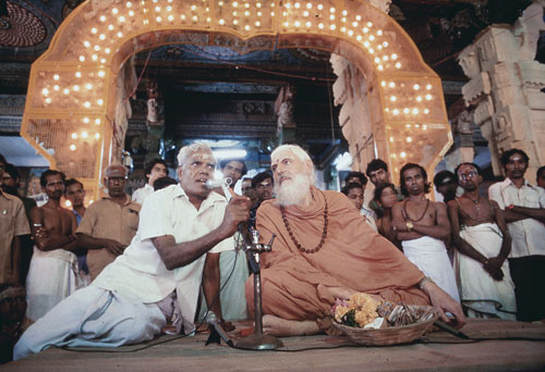 This is Gurudeva in India on the 1983 Innersearch speaking at a temple in Tamil Nadu. Mr. Murti, who has since gone to Siva's feet, is translating for the audience. Mr Murti was our Indian liaison officer for several decades. He had amazing executive powers. There was nothing he could not get done. We will always remember him for his dedicated service.