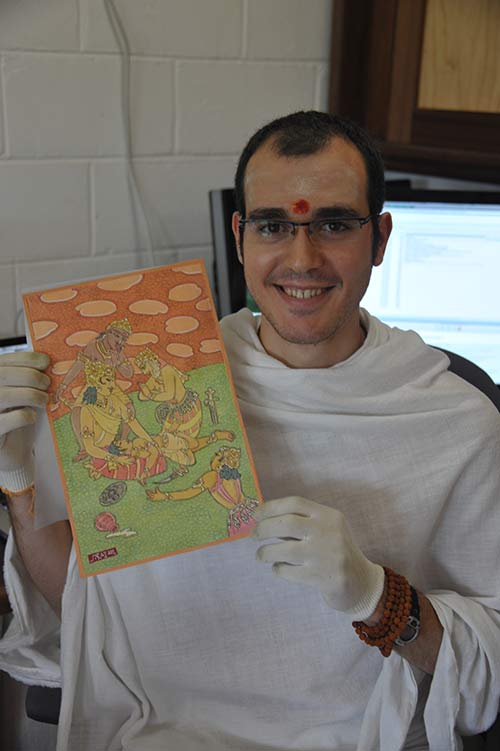 Today in the Ganapati Kulam Senthilnathaswami and Mayuran are working on digital imagery. Here, Senthilnathaswami is color correcting all the images that will be in our new book on the line of Guru's, "The Guru Chronicles".