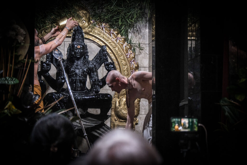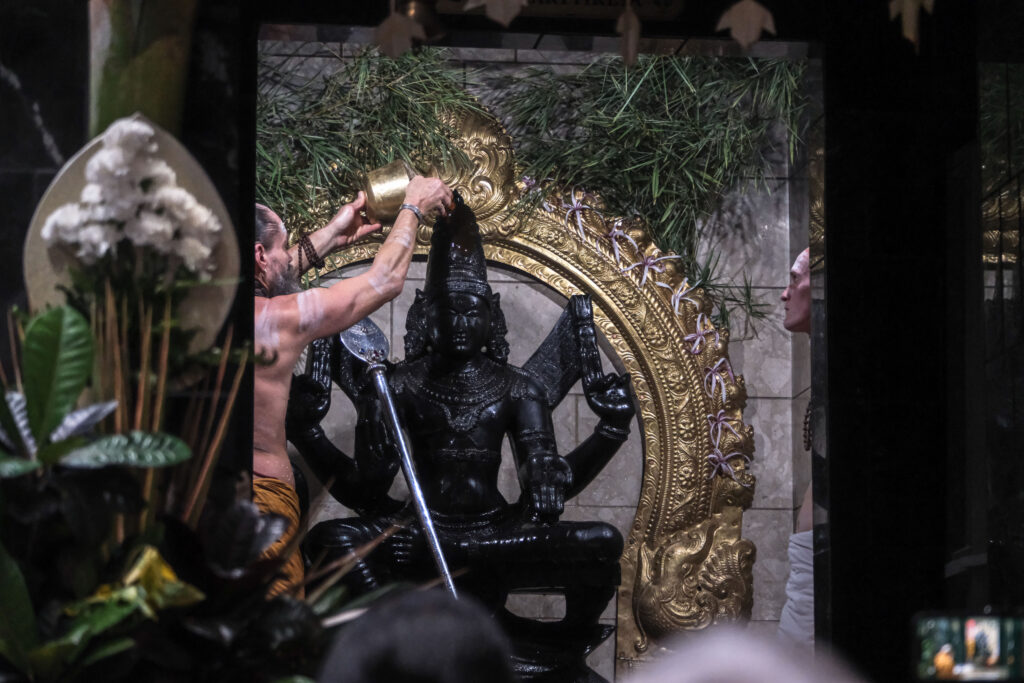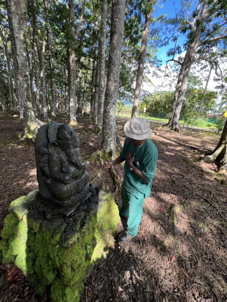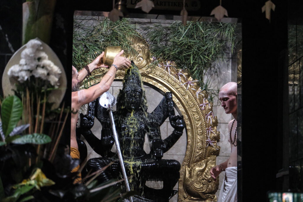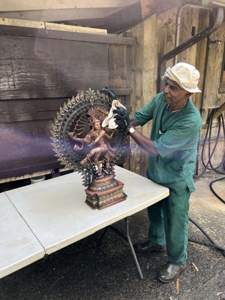 Iraivan Day is a day each month that the whole monastery devotes to work related to Iraivan Temple and the San Marga Sanctuary. First thing in the morning, we all gather around in the Guru Pitham and prepare the month’s paper newsletters to be mailed to devotees. Once done with that each monk and taskforcer is assigned to do another task, by Yogi Haranandinatha. Here is a look into what Vel was doing for his Iraivan Day. He began by cleaning the Rudraksha Forest Ganesha which hadn’t been cleaned for quite a long time. Vel was very thorough, and Ganesha is now looking very neat and clean. Once done with that, he went to Murugan hill and cleaned the area around the granite Vel in top of Muruga Hill. Once finished, Vel took the Nataraja statue from the Saivite Satguru Path and washed and shined it well. It also hadn’t been touched for a very long time. As you can see, Vel took his tasks seriously and gave 100% effort. Aum!