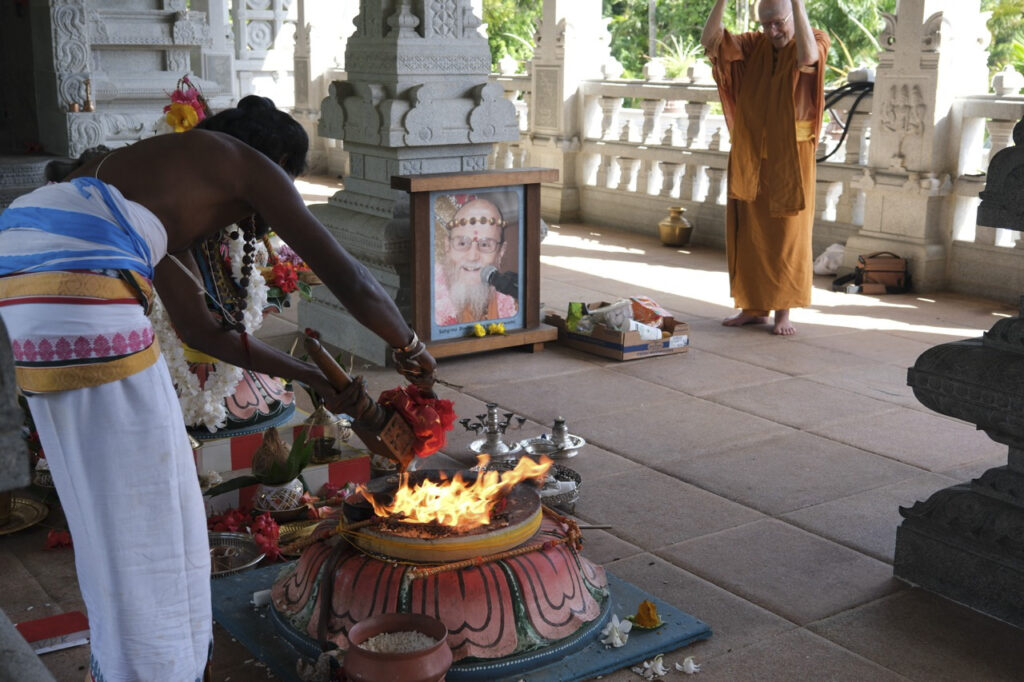 Today marks Gurudeva’s 98th jayanthi, meaning he would’ve been 98 years old today. To celebrate this auspicious event, in Alaveddy, Sri Lanka, devotees of our parampara performed a special puja for Gurudeva at the recently completed Paramparai Mandapam. They also recited the Thiruvasagam—one of the most sacred hymns for God Siva. This work was beautifully written by the Tamil Saint, Manickavasagar, as is full of spirituality and devotion. It contains 51 compositions and constitutes the eighth volume of the Tirumurai. It explains the connection of the soul to God Siva and how we should surrender ourselves to the feet of Lord Nataraja with purity and devotion, thus attaining moksha through His grace and divine power. Tiruvasagam holds within it core understandings of Saivism which few-other devotional songs provides. Below are words from our beloved Rishi Thondunathan about the event: