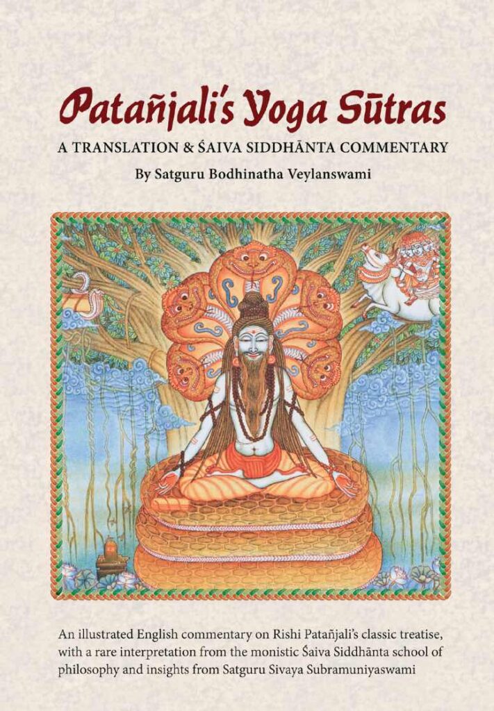 A sweet book review came to us from the Big Island and it is worth sharing with all CyberCadets. It speaks of one devotee’s discovery of what Satguru Bodhinatha Veylanswami has achieved with his newest book, Patanjali’s Yoga Sutras. We include below the review and we exerpt one of the slokas and Satguru’s bhashya as an example of the textual structure. You can download the PDF of the entire illustrated book here: www.himalayanacademy.com/books/patanjalis-yoga-sutras/