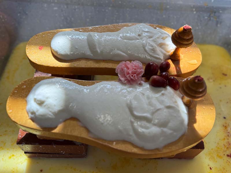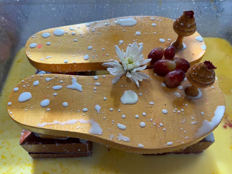 Fast forward to today. The monks are still getting used to proper asphalt paths, made possible by an unexpected gift. In the past 3 months we have paved virtually all roads and paths, several miles worth, so even on rainy days we can drive safely and comfortably around the monastery. It has changed our life in the same way cross country highways changed the dynamics of transportation in all nations. The slideshow shows the progress and the slider gives a BEFORE & AFTER of the path that now circumnavigates Iraivan Temple.